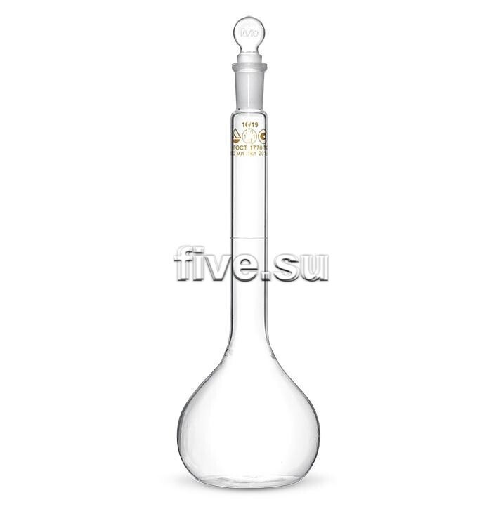 Колба мерная с пробкой предназначена для отмеривания и хранения жидкостей, приготовления растворов в заданном объеме. Изготовлена из химически стойкого стекла (ХС1). ГОСТ 1770-74.